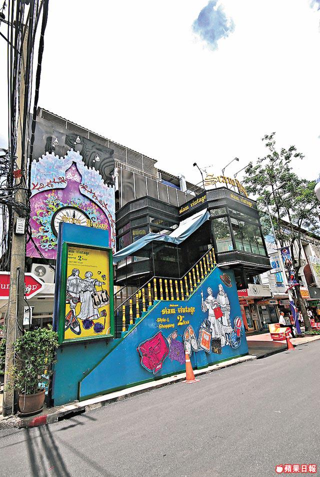 好多香港人逛的ByPass樓上,廢置多年的大樓變成新商場SiamVintage,連當地人都不太清楚正確位置。果然由地鐵站走過來的路上,一直問人也不知道,只叫我們去找ByPass。老實講,個場好細,得一條L形巷仔,但如其名招徠一些專賣復古風格潮服的小店。場內環境設計得像歐式小街,有些是在翟度翟及拆了的SuanLum夜市裏的攤檔,因為嫌遠及租貴,而不肯去新開的Asiatique擺攤,所以進駐入這條巷仔。有幾間店售賣由美國搜集回來的衣飾品,特別是民族花平底鞋很受歡迎,更特別的是懷舊太陽鏡收藏,雖然是從台灣入口,但經老闆精挑細選,混入些少美國貨,以六十至八十年代為主。還有店舖His&HerVintage的店主經常泰國及美國兩邊走,打點翟度翟、SiamSquare及SiamVintage四間店的古董首飾店生意,最愛五十及六十年代的優雅風格。Mannequin則是自家設計的恤衫品牌,可度身訂做,價錢都不過約$240起。