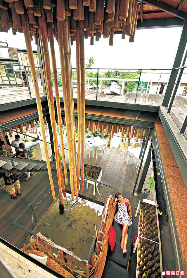 TreeHouse的網頁第一格就講明「Wearenotforeveryone.」,然後嚴正聲明酒店概念及結構,26項酒店特色,於是你得細心閱讀,自我評估是否啱Key才好訂房,例如酒店就係要融入自然,唔用殺蟲噴霧,河流會減低蚊患,但其他昆蟲才是原居民,你得與牠們共存;成間Resort都禁煙,包括你間房;公共空間擺明無冷氣,但只要你心境平靜,河邊的空氣已經令你夠舒服凉快;CarbonFree的空間,除了全用當季時令及有機食材外,也只供太陽能慢煮料理,環保又保留食物營養,想要鑊氣就算把啦!聲明多多,但沒入河邊叢林的酒店,滿眼綠意真的好靜好漂亮。因主打竹的設計,所有房間應該是巢(Nest)才正確!全都是複式,還有天台太陽椅,讓在你樹聲鳥鳴下真正享受大自然。但最獨特的地方,肯定是無論網頁還是攝影集都會介紹的,就是隱沒在酒店盡頭的竹子露台,幾片白窗紗在風中飄搖,那可也是一個「巢」!於小露台上向下望着一片樹叢,凉風吹來頗是清爽,晚上更可數住星星入睡。但落雨點算?太熱點算?有蚊點算?香港人就係太多顧忌,只要你租住這環保露台,其實連同客房一間,落雨冲凉都有瓦遮頭,唔怕啦!