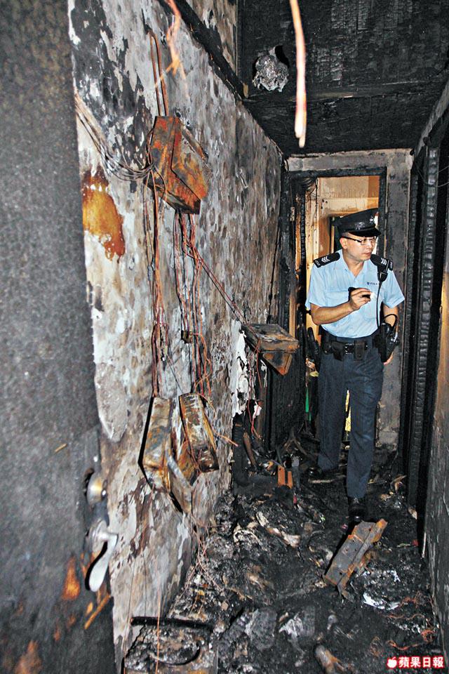 現場荔枝角道84號勝興樓,昨晨11時許,二樓一間百餘呎劏房電線短路起火,火舌沿電線蔓延,燒爆電箱傳出連串爆炸聲,鄰房住客江先生驚聞巨響,未幾電箱跳掣漆黑一片,他走出房間查看,即見鄰房木門燒着,連忙開啟手機上的電筒功能,摸黑返房取回身份證及財物,聯同一名女友人逃生。