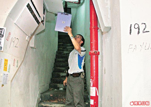 【本報訊】旺角花園街九屍慘劇現場複製劏房繼續出租事件曝光後,終於「驚動」了各政府部門,消防、屋宇署和機電署昨天先後派員上門巡查,由於部份單位無人開門,導致大家只在梯間上來下去,猶如「做騷」。