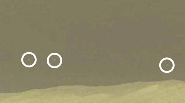 美國火星探測車「好奇號」(Curiosity)在傳回給地球的照片中,被眼利人士發現火星天空有神秘光點(圖),引起人揣測那是外星人的飛碟。英國網民在「好奇號」傳回的其中四張照片中,發現在火星地平線之上有神秘白光點後,用濾鏡將影像過濾後,發現有四個異常物體,不禁提出疑問:「究竟這四個物體是甚麼?UFO?沙塵?還是其他東西?任你自行決定。」