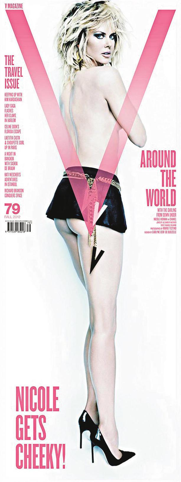 45歲奧斯卡影后妮歌潔曼(NicoleKidman)雖然育有兩名女兒,但體形依然玲瓏浮凸,即使穿着超迷你裙,赤裸上身並露出1/3個屁股,為潮流聖經《V》雜誌拍攝9月號封面,依然給觀眾帶來開心驚喜。英國《每日郵報》