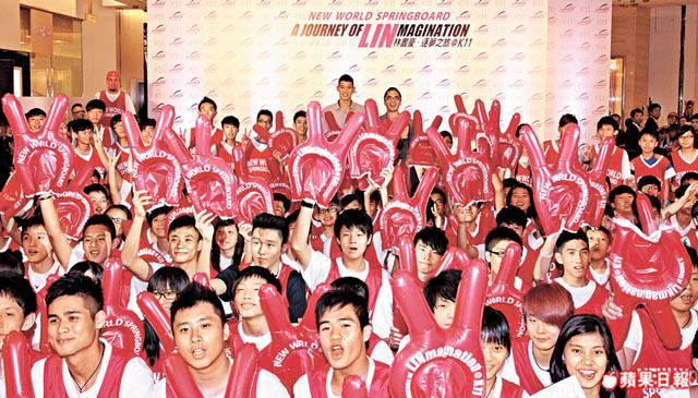 「林瘋」魅力,看看昨日近百名中外傳媒,還有球迷逼爆的商場可見一斑。自2月成名後首次來港,林書豪昨應邀出席新世界集團活動;簡單的恤衫牛仔褲,加上親切笑容,將前兩天見到記者即黑面的形象一掃而空。在兩個小時與球迷互動中,林書豪幾乎全程說英語,大讚香港是美食天堂,只是不習慣被狗仔隊跟蹤。