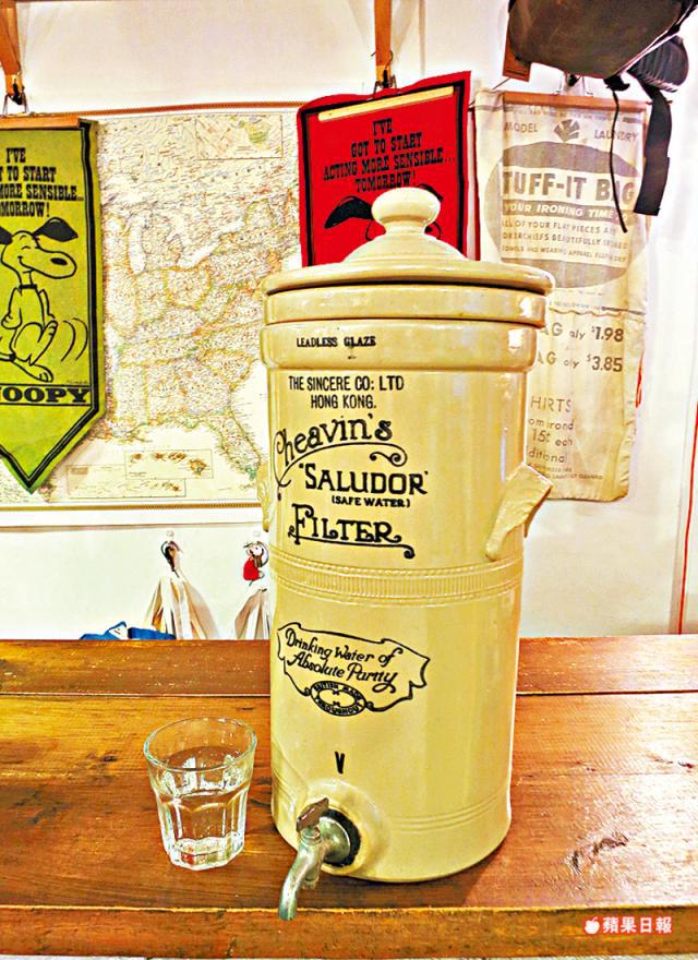 Patrick開店之後除了有一班忠實的古着熟客之外,這批熟客還成為了他的朋友;他們送了一個保存得極好的濾水器給這家小店,是香港早期出口產品發展蓬勃的證據。本港有名的先施公司製作出這台濾水器,裏面的濾芯還建議使用以前的人會用的墨魚骨粉!好厲害呢!