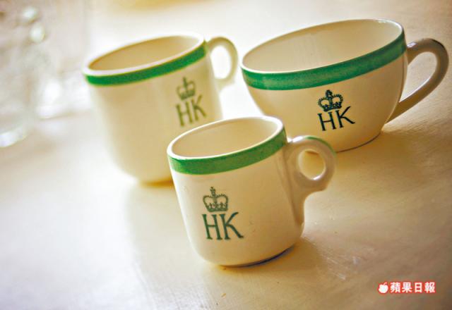 直到戰前,一般的奶茶杯已是現今一般茶餐廳看到的模樣,杯口的圓邊多是紅色,但原來舊時還有綠邊和藍邊。最後一次看到藍邊是在中環蛇竇樂香園一大盤杯子之中只剩下唯一一隻,雖然顏色已經剝落得七七八八,但仍然後悔沒有偷為己有。另外,值得留意的是杯耳,以前是帶有英式風格的尖耳,現在已經清一色變為圓耳,賣相也即時英氣不再。在一系列殖民政府的杯碟中,亦可以看到當年英國人是如何注重餐桌上的文化,回歸之後,一切從簡,也即自動放棄精緻品味。