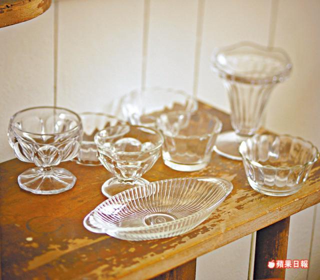 在冰杯、雪糕和啫喱杯上,我們很容易看到美學的淪陷,因為這些充滿art deco裝飾風格的餐具,透過玻璃的物料所折射出來的世界,是超現實的,而雪糕啫喱紅豆冰對於小孩來說,同樣是超現實的,在繽紛的色彩之中,我們知道歡樂就是這樣引人遐想的一回事。