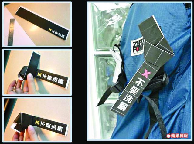 昨日有多名良心老師支持黑衣行動,任教高中的盧老師,同樣是新婦女協進會成員,昨日向參加嘉年華人士派發「河蟹味洗腦精」貼紙,諷刺國民教育科是味精,味道不是食物的真正味道,用作欺騙舌頭反應,正如國民教育科一樣,以認識國情為名,實際洗腦工程。盧老師已買了全新黑裙子迎接新學年,並呼籲同事響應。