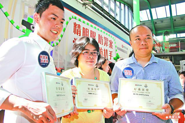 其中一名獲獎市民蔡友尊(圖左)表示,今年7月中某天上班時,發現對面電梯約25歲西裝男士將手機放在膝蓋,鏡頭指向前方女士裙底,初時不以為意,後來見該男子繼續在大堂徘徊,覺得有可疑報警。結果警方在疑人手機內發現有24張裙底春,拘捕該名偷拍狂。蔡透露,當時亦有其他乘客發現疑人舉動,但表現冷漠,他呼籲乘客遇罪案時,要勇於舉報。
