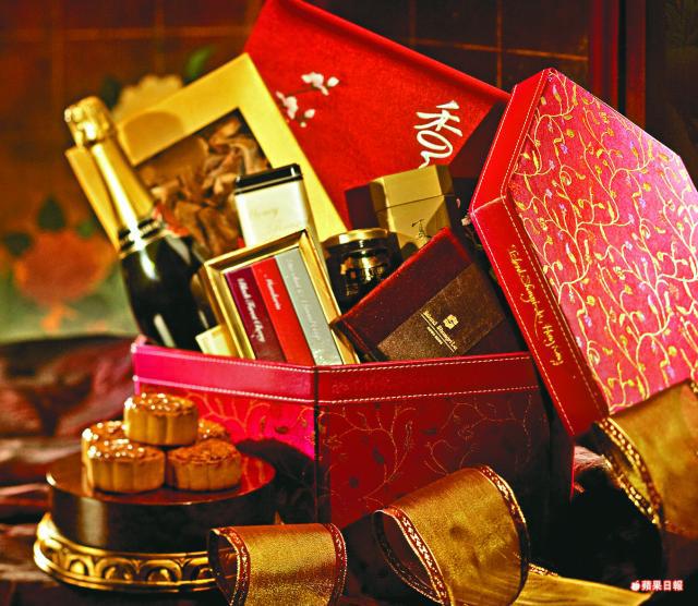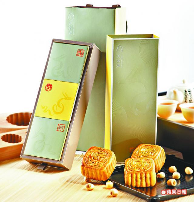 「龍行天外天月餅」一盒三個蛋黃白蓮蓉月餅,餅皮上的龍形篆刻乃出自中國當代篆刻藝術家馬桂綿博士之手。售268元。另有「天外天禮品籃」,售1680元。