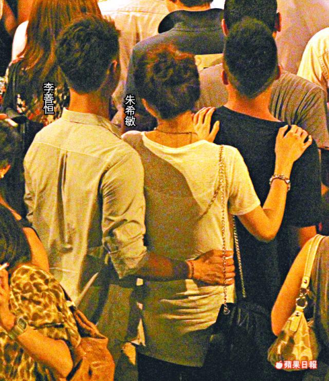 朱希敏同李善恒前晚先喺中環雲咸街一間pizza店開餐,擦到凌晨一點半就手拖手離開,同行仲有幾位朋友。束起頭髮嘅朱希敏一路行一路笑晒口同男友傾偈,睇嚟相當開心。佢哋之後行咗去夜店Fly,入門口嗰陣,朱希敏仲搭住個男性朋友膊頭跳吓跳吓,而李善恒就從後攬住朱希敏條腰,前後有壯男護身唔怕俾人抽水。佢哋喺夜店逗留咗半粒鐘就走人,之後李善恒就拖住朱希敏行去搭的士。的士駛到太古城之後,李善恒發現有記者尾隨,於是好避忌咁即刻叫司機開車走人,而朱希敏就跳吓跳吓咁行入大廈,心情靚到爆。