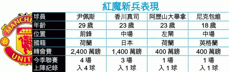 「水能載舟,亦能覆舟」;新兵增加球隊實力,往往能將戰績推進一步。紅魔聯賽3連勝,尹佩斯、香川真司、阿歷山大畢拿等都找到入球。但相反,新兵與原有球隊體系格格不入,新舊人不能合作,反而弄巧反拙,祖阿倫、波連尼等紅軍新兵,暫時的評價都是水準之下。咖喱、牽牛