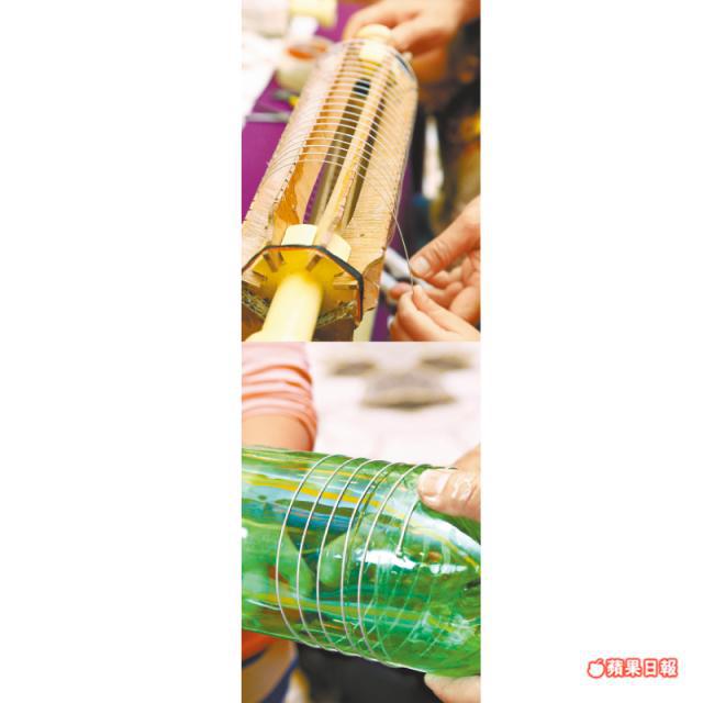 先把鐵線有序的一圈圈綑在模具上,若沒有模具可以用膠樽代替。