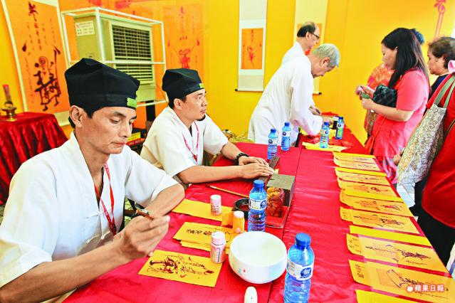 廟會除設演神功戲的竹棚,更請得蘇州茅山道院的鄭道長及余道長寫符,吸引大批善信索取,「我想要平安符,我要催財運,中一億六合彩呀!」