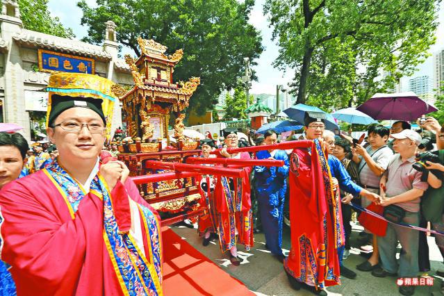 嗇色園繼09年後,昨再迎請黃大仙移鑾出會,由包金鑾輿運送大仙畫像離開祠廟,由穿上古裝的巡遊隊伍護送巡區;今午5時會舉行接駕回鑾儀式。