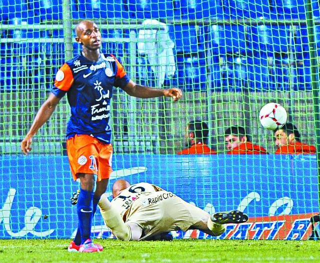 蒙彼利埃憑蘇利文尼卡馬拉(左)建功,1:1逼和聖伊天。法新社