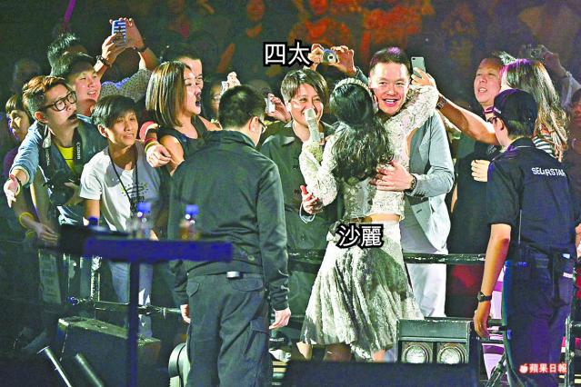 個唱上,放映了沙麗的童年照,有她小時候露兩點,還有一位是她六歲時的外籍初戀男友,她笑說:「當時喺校園相識,細個時對方已識英雄救美,唔會俾人蝦我。」除了初戀曝光外,完騷後沙麗接受電視台訪問時,透露坐在四太身旁的是前男友。此外,她又直言不滿表現,給自己不合格,希望再改進。至於整晚的華麗舞衣非常性感,有否經阿Lam過目,她說:「佢今晚先第一次見,之前已同佢講唔好嚇親。」