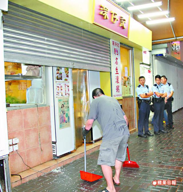 《油麻地》【本報訊】六雙用完即棄筷子要六蚊,大佬谷氣引發糾黨刑毀案。油麻地砵蘭街深仔記粥麪店,昨日凌晨被人飛掟枱凳擊毀舖面玻璃,一名男子買外賣淨雲吞索取六雙筷子,懷疑不滿額外收費,召來大漢報復搗亂,警方正追緝四名涉案男子歸案。事發油麻地砵蘭街99號深仔記粥麪店,開業近30年,由人稱深哥的姓周東主經營。昨日凌晨3時許,一名20餘歲男子,到上址買外賣淨雲吞,但要求拿六雙筷子,店員見筷子數量不少,提醒每雙筷子額外收費一元,客人爭執一番付款離去,未幾帶同三名男子折返找晦氣,用枱凳掟爆舖面一幅約四呎乘四呎玻璃逃去。店員事後嘆謂︰「早知返轉頭打爛嘢,就畀佢算數。」東主深哥在區內交遊廣闊,去年接受雜誌訪問細說砵蘭街生存之道,曾說︰「冇嘢㗎!搵食最緊要醒目,咪得罪人,講義氣,大家為兩餐啫!」
