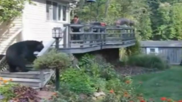 黑熊硬闖你家怎麼辦呢?英國一名婦人作出完美示範。