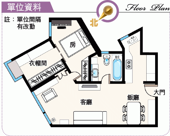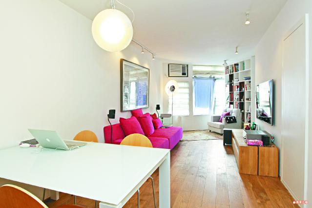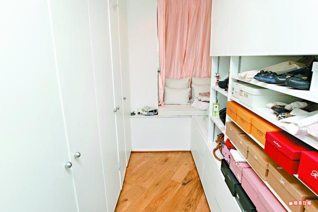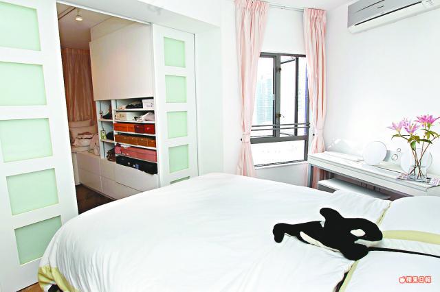 原則兩房合併做一間,以及移出門位,訂造衣櫃。寢區夠大,睡床放正中,並將打通的房間作衣帽間,貯存大量服飾鞋履。廚房盡頭近窗處呈不規則形,訂造地櫃化解,加上開放式設計,消減侷促感。