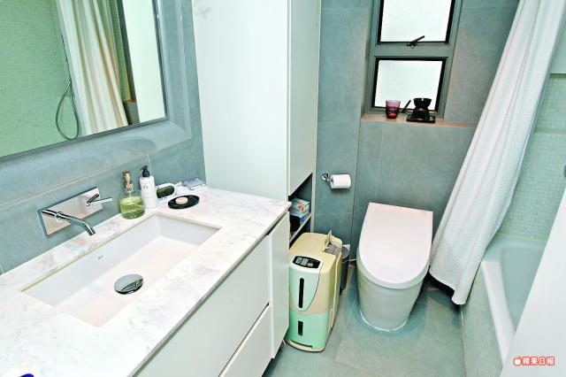 戶主為全屋換上新裝,走清簡的路線,鋪實木地板,牆身髹白色油漆,合二為一的套房內訂造白色入牆櫃,衣帽間安裝白色雙趟門。廚房牆身鋪黃色珍珠面馬賽克,白色廚櫃內置名牌Miele洗衣機、西門子洗碗碟機、焗爐及微波爐等,設備齊全。