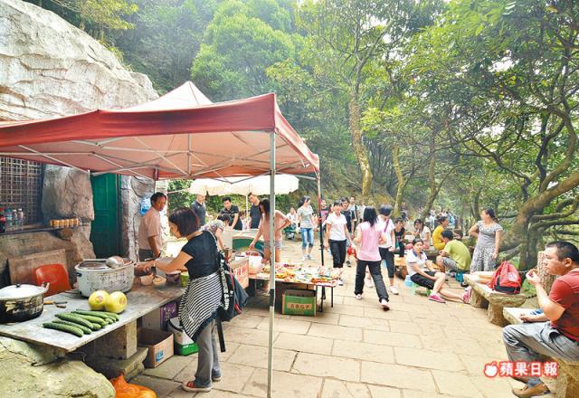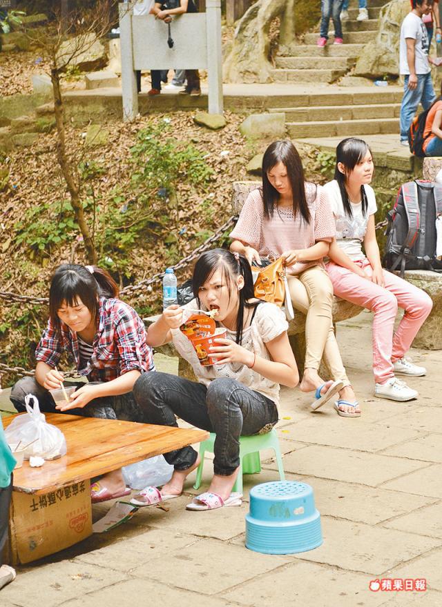 接近山頂時,沿路有不少食店,不用帶太多乾糧。My god哥為我們精挑了兩間店,一家無名店位於前往「停車場」的路上,另一家「倚天招鳳亭茶藝館」則在小梧桐電視塔旁,山上的店沒有確實地址,因為郵差不用送信,職員要到梧桐山村取信。兩家店美食多,茶葉蛋、酸辣粉、西瓜、小籠包等統統都有,辛苦得來有美食!