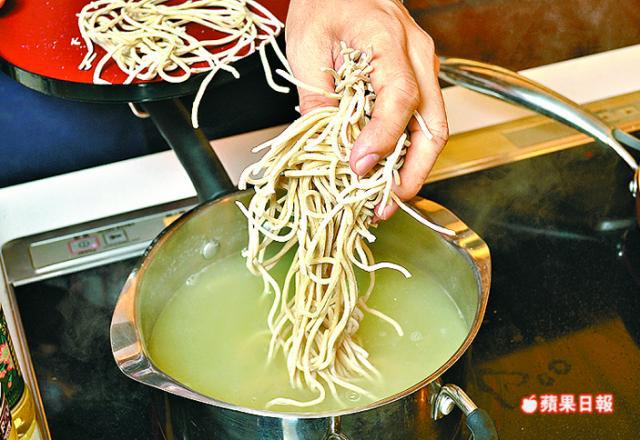 拉麪灼2至3分鐘,保持稍硬身,過冷河備用。
