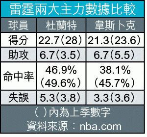 新季至今最大的交易,非雷霆放夏登到火箭莫屬。記得上季打波時,和波友提到雷霆的杜蘭特(KD)的一個笑話:「聯盟能阻止KD入波的只有一個,就是他的隊友韋斯卜克」;全因此子經常自己帶波亂鏟,留下KD在3分線外發呆。今季隨着夏登離隊,新兵奇雲馬田不擅長控球,韋斯卜克角色更形重要。先不論夏登在火箭大放異采,雷霆開季至今只錄得1勝2負;球隊主力KD亦因肩負更多控球責任下,失誤數字直線上升(見附表)。