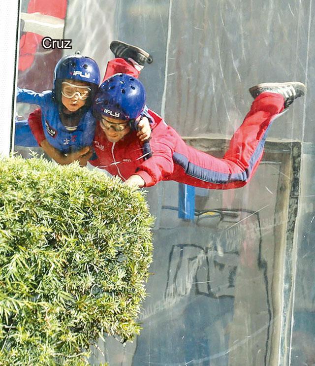三仔Cruz則在影城內大玩刺激的室內跳傘,抱在Victoria懷內的Harper不停向三哥揮手,精靈爆燈。