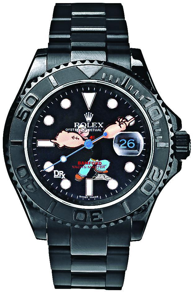 一隻改裝勞力士可以登上拍賣行安帝古倫(Antiquorum)及佳士得,拍賣價比原價還要高三倍。因為那是出自George Bamford的手筆,他將經典Daytona款式改成全黑色, 將經典卡通人物Popeye放在Yacht-Master錶面上,每隻改裝勞力士產量極少,投資價值極高。