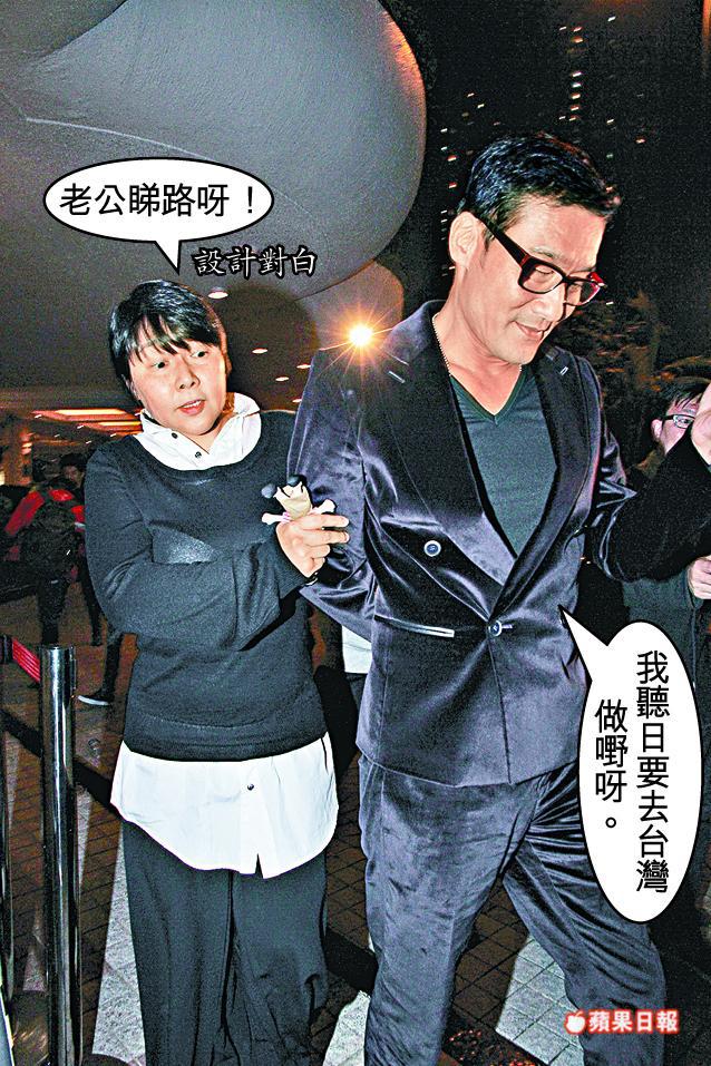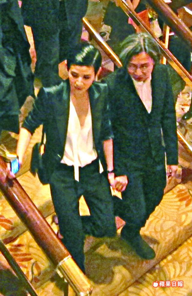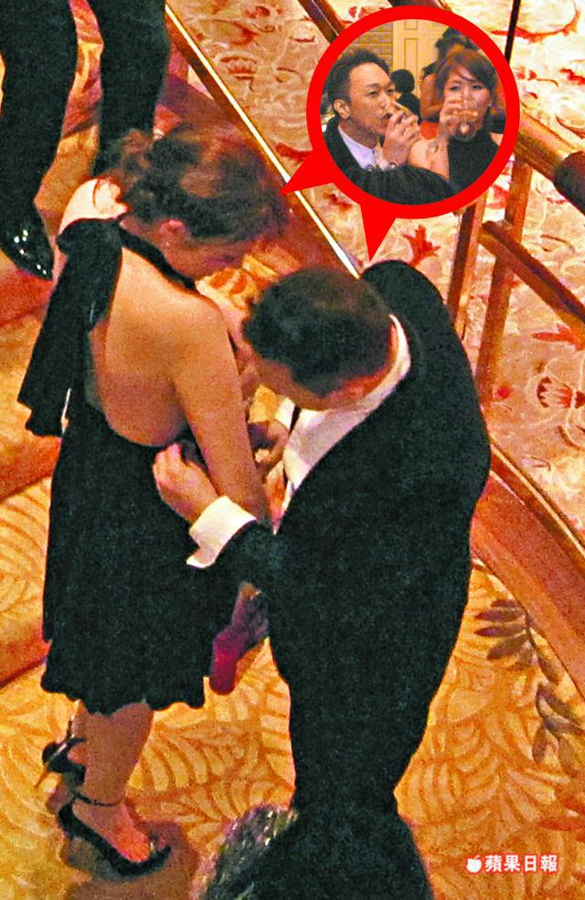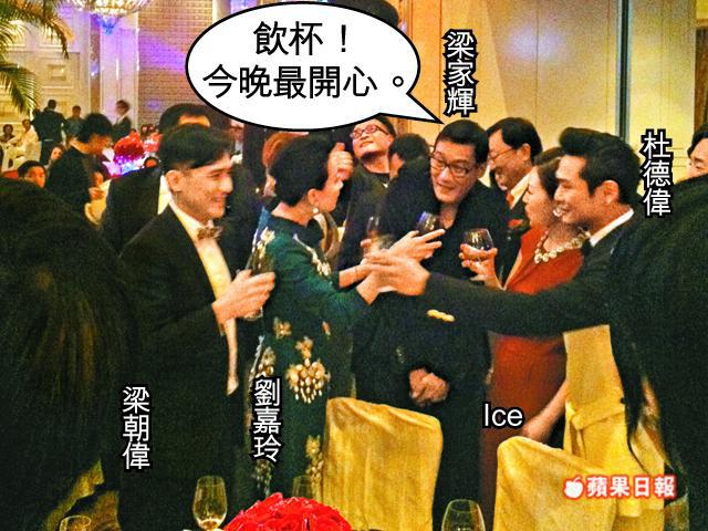 梁家輝開席前已飲到啤啤夫,還未散席,他已被老婆江嘉年扶住離場。