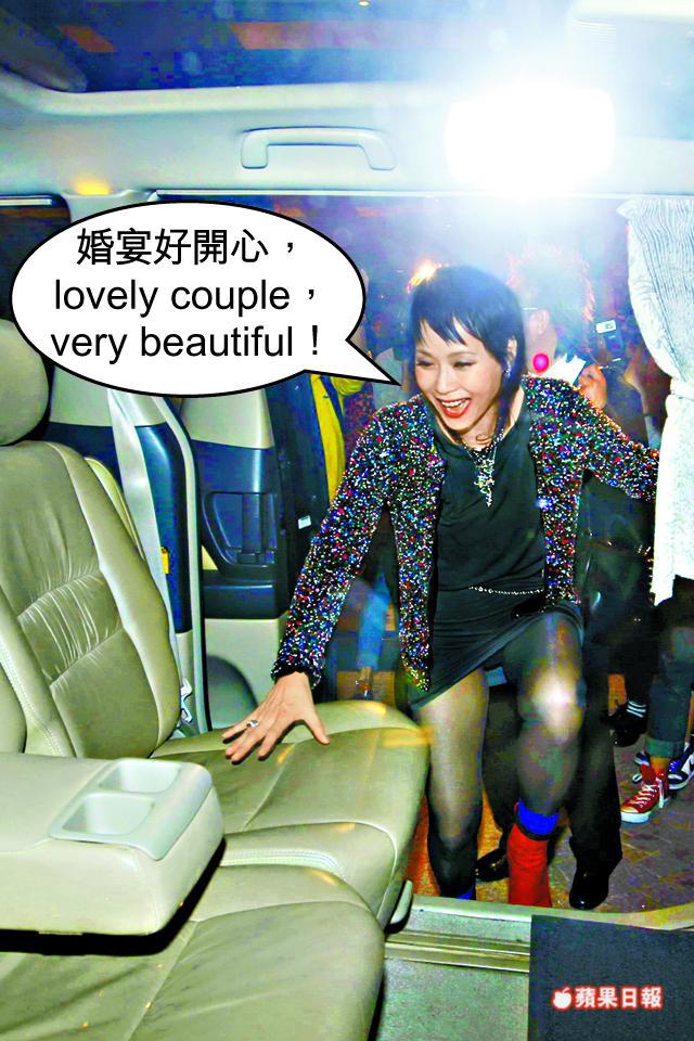 例牌飲醉的葉童唔輸蝕,今次她雖然未有打橫出,但上車時醉到忘記儀態,春光乍洩,講說話忽中忽英。