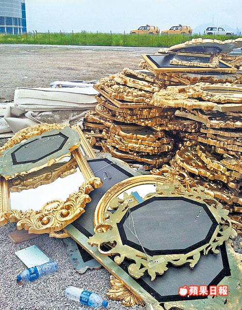 但昨日有讀者投訴婚禮過後,婚宴入口處堆積大量垃圾,相信製作單位尚未及時處理,記者昨日往現場視察發覺有大量絲絨梳化及豪華鏡子,堆積如山更被視作垃圾處理,頗為浪費。