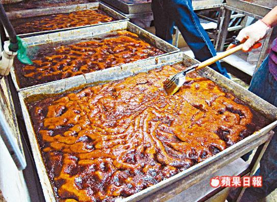 糖煮完後,便要倒模,這時的糖漿超過百度高溫,放着也會自行加熱,不停的冒起火熱岩漿,我看着工作人員一直在翻起又壓平糖漿,要是彈到手上也真不知怎麼辦,也就乖乖的不敢亂動,直到降溫至80度,切塊後便完成。把這真材實料的冬瓜糖600克加十倍的水來煮開,便成了原味冬瓜茶。有北部人覺得稍甜,但我倒覺得剛剛好。