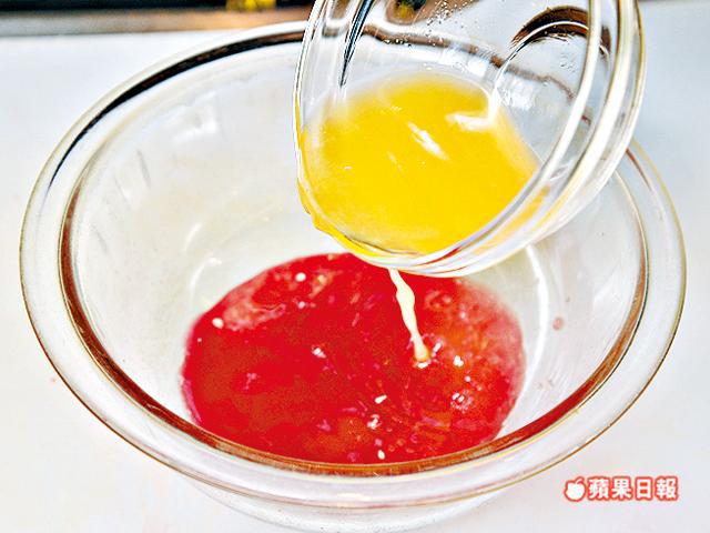 2.把油醋汁所有材料拌勻,備用。