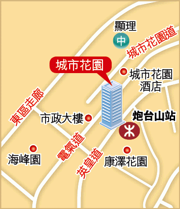 城市花園第14座建於城市花園酒店西南面,毗鄰電氣道市政大廈,是整個屋苑來往港鐵炮台山站最快捷一座。該座每層6伙,撇除電梯不達的頂層28樓A及B室為522及553方呎兩房間隔,其餘單位俱為三房一廁戶型,當中以C及F室面積稍大,由702至721方呎,客飯廳較闊,有對流窗,可惜窗戶細小。A、B、D及E室面積641至678方呎,客廳窗戶較闊,飯廳旁為廚房,但入門有短小玄關。