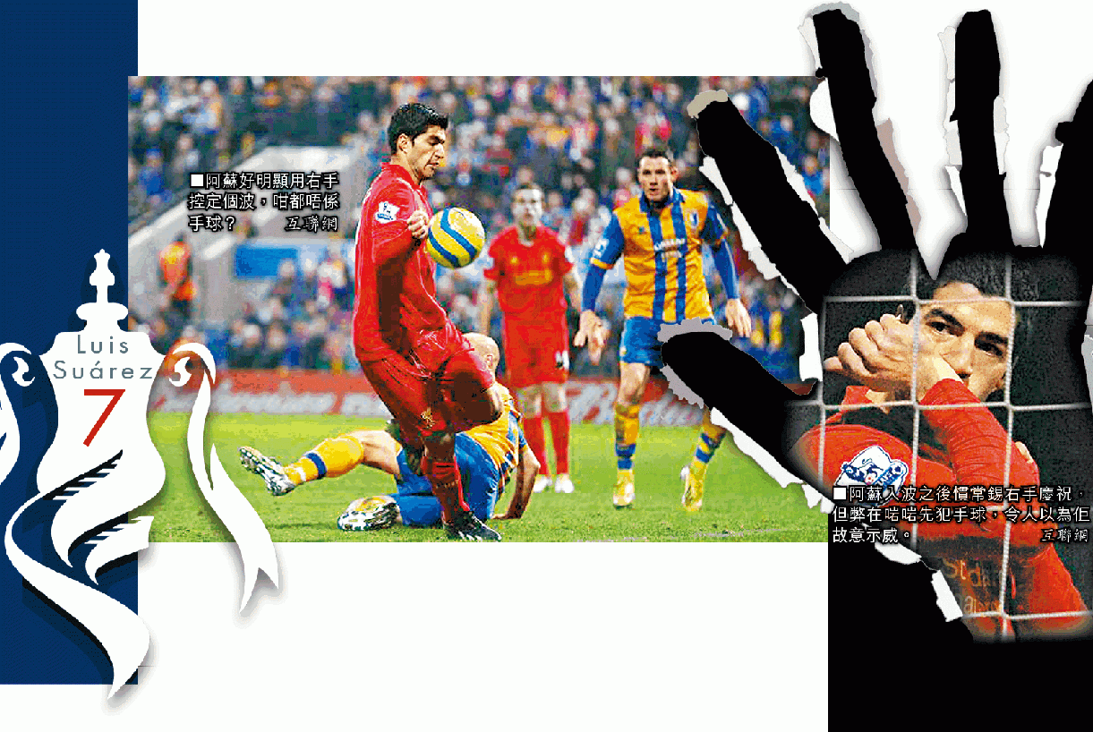 利物浦前晚喺英足盃第3圈作客非聯賽球隊曼斯菲,雖然贏2:1晉級,但就贏得唔多光彩,事關「阿蘇」蘇亞雷斯喺入第2球波之前明顯犯手球,不過唔知係球證馬利拿走漏眼定係認為佢冇心,結果冇吹罰佢,咁就搞到曼斯菲含恨出局。