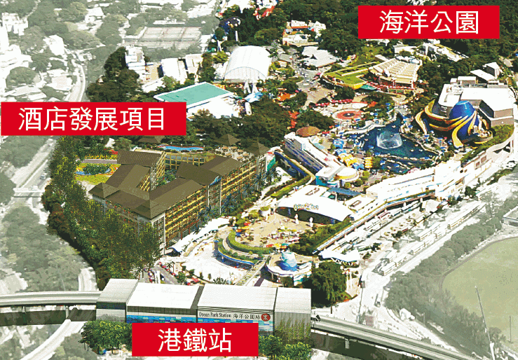 【本報訊】海洋公園首間酒店海洋酒店再招標,酒店屬四星級共495個房間,料2016年落成。大樹灣漁人碼頭酒店則押後至年尾,待水上樂園計畫落實再招標,料2017年落成。上次招標疑因補地價太貴而流標,今次則不設補地價底價。