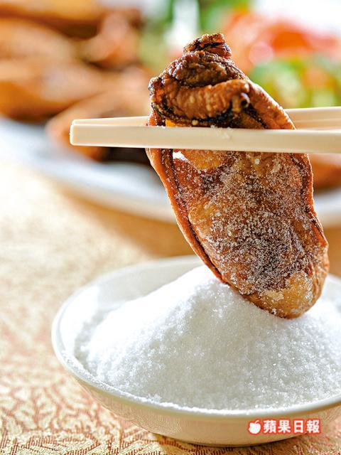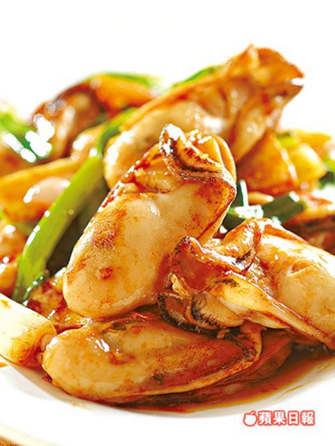 正值蠔肥季節,蠔水生蠔一貨勝一貨,若去不到流浮山的話,那老字號得龍大飯店可以讓蠔癡過一過口癮,他們用上流浮山蠔水炮製了兩道菜,其中一味砵酒焗桶蠔,可是飯店的得獎菜之一,將原隻生蠔撲上生粉油泡後,用上砵酒和流浮山蠔水做芡汁加以焗製,故桶蠔外皮略帶脆口也掛滿砵酒汁,一口咬下桶蠔,當中仍保留了肉汁不會變至乾身,實是一絕!另一味就是生煎金蠔,師傅用了流浮山的蠔來煎,金蠔經過輕微香煎,沒讓水份流失,蠔汁豐潤,建議蘸點蠔水來吃,便更能帶出其鮮味。