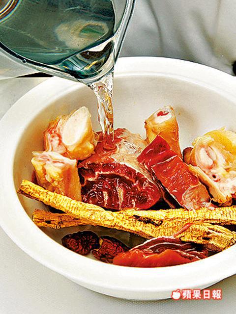 5. 加入水,隔水燉3小時,最後15分鐘落鹽調味即成。