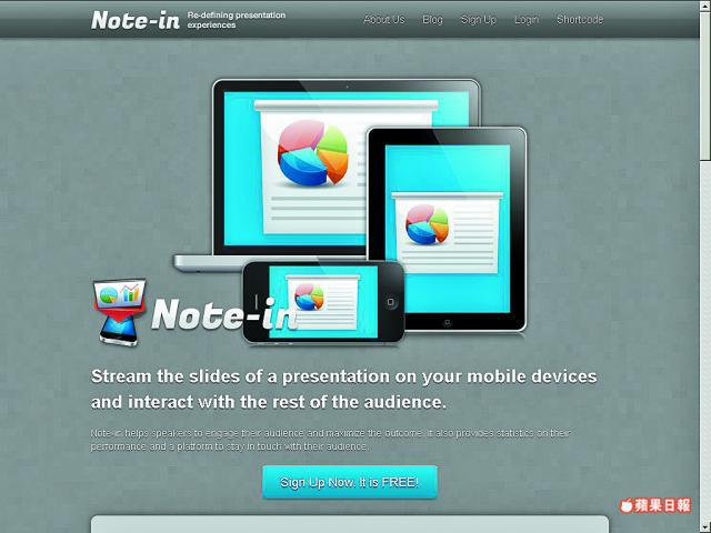 他們去年成立公司,投入20萬元開發全新程式note-in。程式為一個演講輔助平台,讓講者與觀眾進行互動。觀眾只須利用QR code,可即時下載、同步演講資料,甚至與講者作即時交流。他們將會向研討會主辦機構、大型企業等推銷程式。目前正處於收集數據階段,因此未有收入。目標不只香港,更會遠銷中、美、法。
