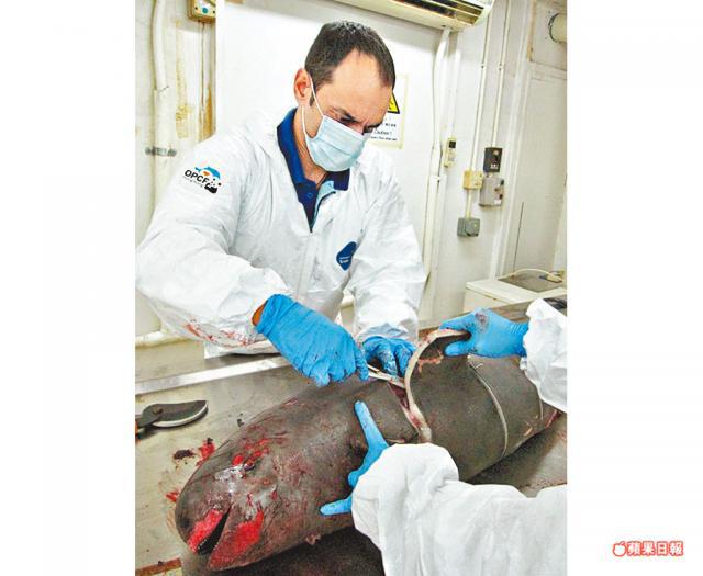 昨晨8時許,海事處機動垃圾船在維港清理海上垃圾期間,工作人員發現一條豚屍載浮載沉,於是報警,水警到場把牠撈起運往西灣河水警基地,海洋公園鯨豚擱淺行動組人員到場將豚屍帶返實驗室剖驗。