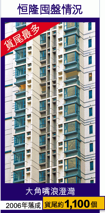 恒隆目前所持約1,400個貨尾單位中,以大角嘴浪澄灣持貨最多,達1,100間,現時呎價已過萬,較07年開售時的7,000元升值超過四成,持貨約250個單位的九龍站君臨天下,呎價亦高達1.7萬至4.2萬不等。有分析員說︰「𠵱家市咁旺,佢啲樓咁低成本,簡直就係暴利啦……現時呎價每升1,000蚊,恒隆貨尾幾乎就淨賺多1,000蚊,不過咁,由於恒隆唔係採取貨如輪轉嘅賣樓策略,佢冇其他地產商咁受惠樓價上升,我唔建議呢個價買恒隆。」