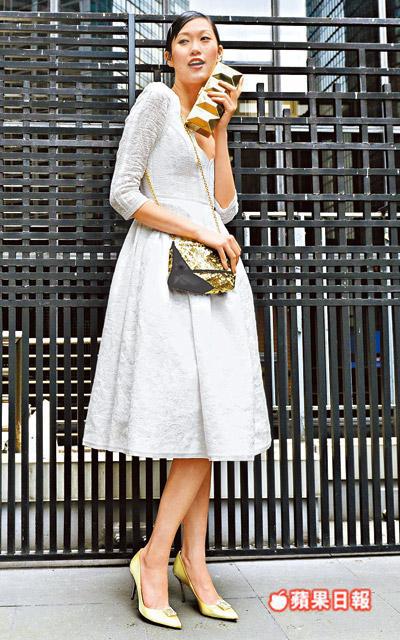 簽名式方釦不可或缺,Metro Square的boxy silhouette,與細小Vivier釦飾,搭配出復古氣息,散發成熟韻味。方釦在stripped canvas clutch上,轉化成海軍風,具年青活力,Marlene矮跟鞋的方釦換上青蘋果綠色,激撞藍綠色鞋身,一嚐青澀滋味。