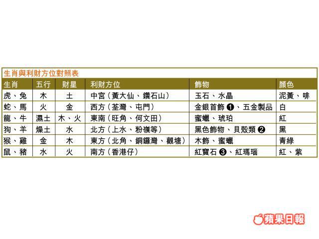 細緻分析,楊子東指因為十二生肖各有不同的五行屬性,所以財星和利財方位也不同。想增加財運賭運,先要認清今年的中宮立極位在黃大仙和鑽石山一帶,然後對照自己的生肖屬性多到利財方位行大運,若出發前穿着合適顏色的衣物、佩戴有利運勢的飾物,蛇年自然賭乜贏乜,想窮都難呀。