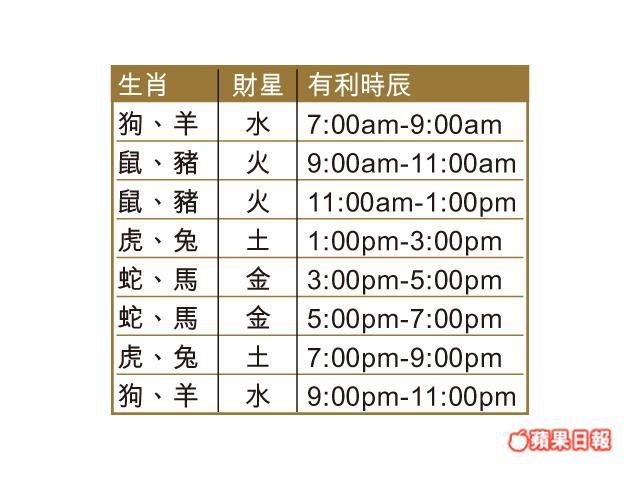 有何當旺號碼?沒打算請教各師傅,免得人人跟住買,一個好彩到時中頭獎,要與人分盞攤薄獎金。給大家多一個貼士,楊子東指各生肖有不同財星,各財星有不同的有利時辰,對照有利時辰入投注站下注,都有助賭運。