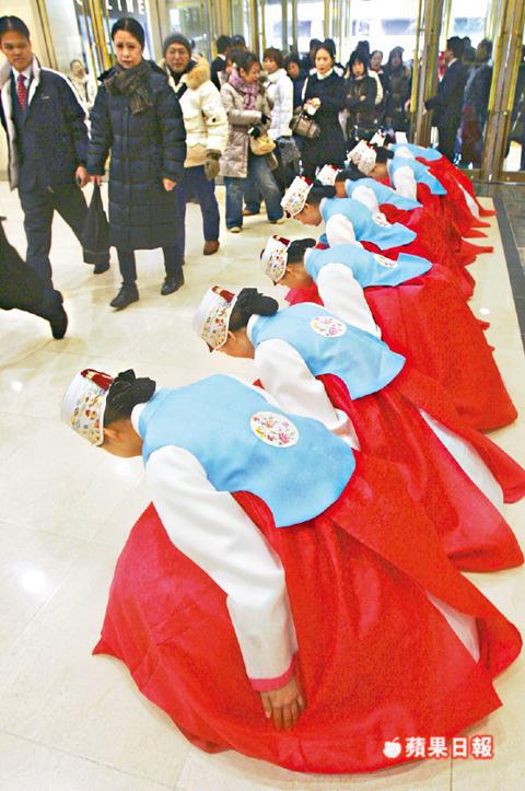 韓國人對叩頭非常講究姿勢,以往會雙手舉起,不過現在已漸趨簡單。