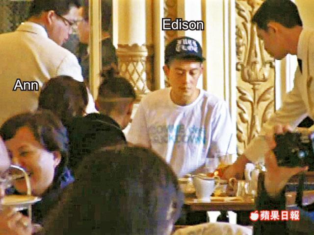 Edison嘆茶時,有人論盡倒瀉水,眼明手快的侍應馬上走近代為整理。其後酒店保安發現記者偷拍,估計Edison獲通知,不一會即見他帶女友Ann及Kevin先行低調離開,撇下兩名外籍女友。
