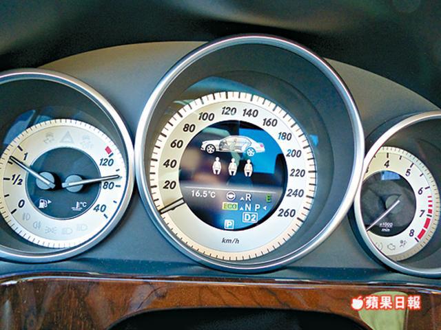 以往只有Coupe及開篷等型號才有的大圓星雙間鬼面罩,今代Avantgarde版房車也可共享,配合全新設計的車頭進氣欄柵、尾擾流及雙出方形死氣喉等改動,新E-Class的確動感年輕不少。最值得一讚是新LED頭燈設計,徹底改變以往雙頭燈面孔之餘,又可保留四眼仔的經典特色,兩條融入頭燈組合的LED日間行車燈,線條十分煞食。內櫳改動方面,主要是將中控台豪華升級,加入S-Class象徵的時鐘、中控飾板款式選擇更多之外,軚環及錶板都是新設計。
