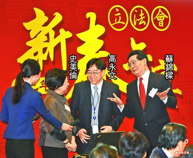 行政立法關係一向麻麻,難得噚日立法會舉行新春午宴,請咗狼英同一眾高官聯誼,不過開飯前雙方仍然要先「過兩招」,各自抽出三名代表比試。遊戲好簡單,就係「看圖噏名」,兩隊鬥講議員同官員名稱,最終主場嘅議員以一分之差落敗,做評判嘅主席曾鈺成即時「護短」,話賽果反映官員知名度唔及議員喎。
