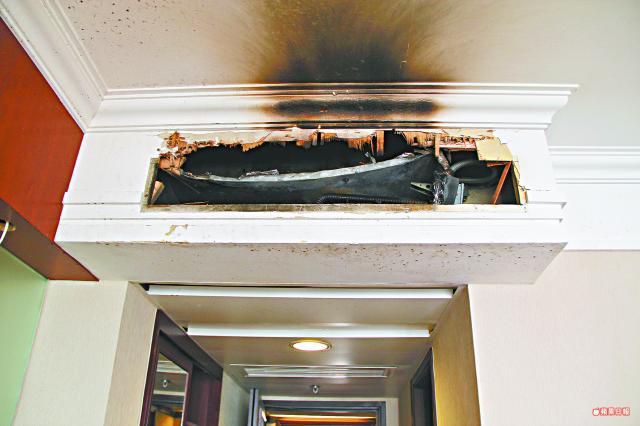 昨晨4時許,兩名在16樓酒店房就寢的27歲及30歲外籍男女,被濃煙嗆醒,發現天花冷氣機槽抽氣扇冒出火光,並波及牆身圍板,立即衝出房間,向酒店職員求助。其時濃煙沿冷氣槽排氣口通往同層其他房間,職員為安全起見,立即拍門疏散其他住客至地下大堂暫避,並報警求助。